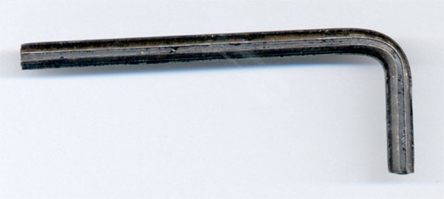 WRENCH (41-W-2459-500): This is a bristol wrench as contrasted to the more familiar allen head. It is 2 5/8 inches long by 1 inch wide. There are no manufacturer's marks. It is unpainted and currently covered with the original black cosmoline. This tool was in the same wrapping as was tool L, AA, and AD. |