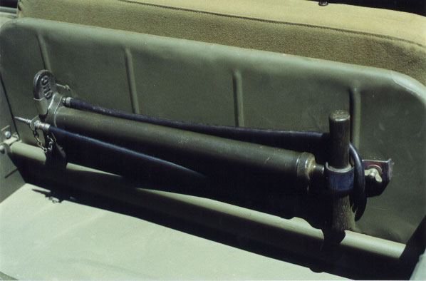 The photo shows the pump mounted in its carrier on the bottom of the rear seat. |